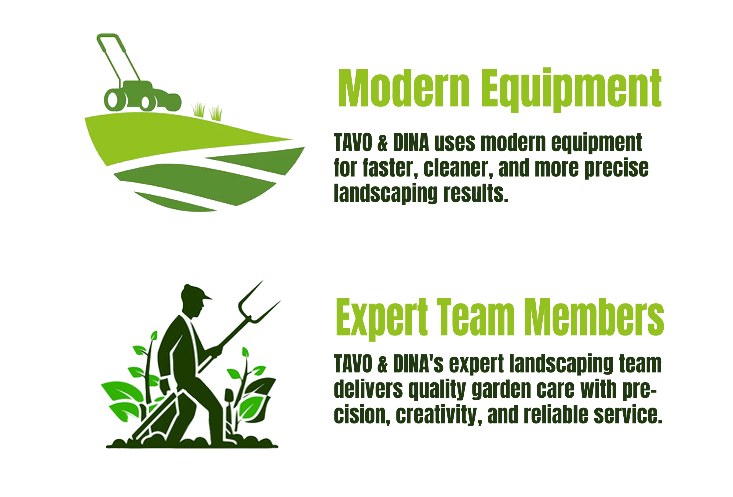 Our mission is to enhance the beauty, value, and enjoyment of your property through expert craftsmanship and reliable service. Whether it’s a small garden project or a full landscape transformation, we treat every job with care, precision, and a personal touch. At Tavo and Dina, your satisfaction is our top priority.